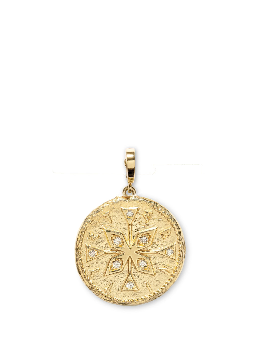 Inspired by a vintage compass this coin features the word Eternity faintly inscribed around the compass.