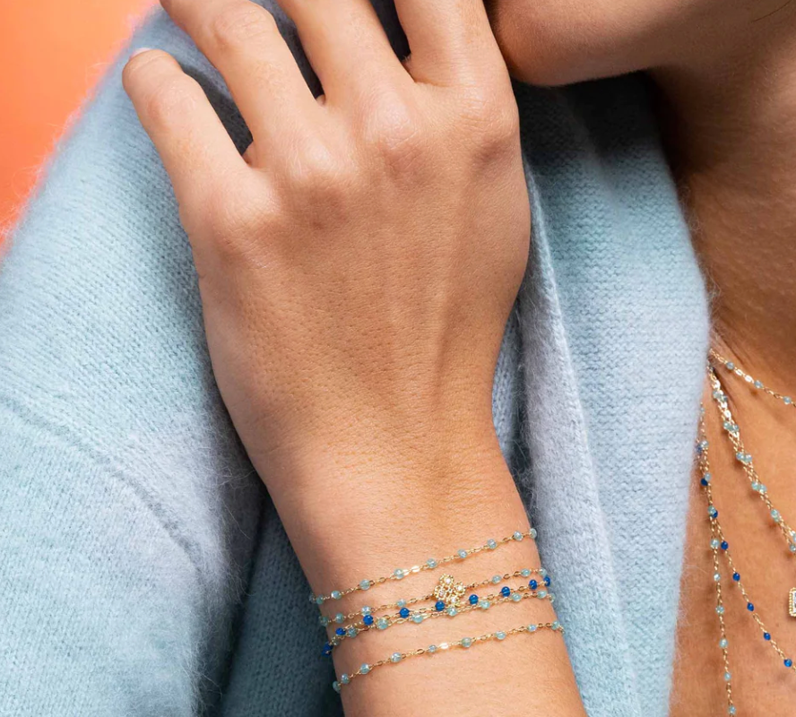 18k yellow gold classic Gigi bracelet in aqua, 6.7"