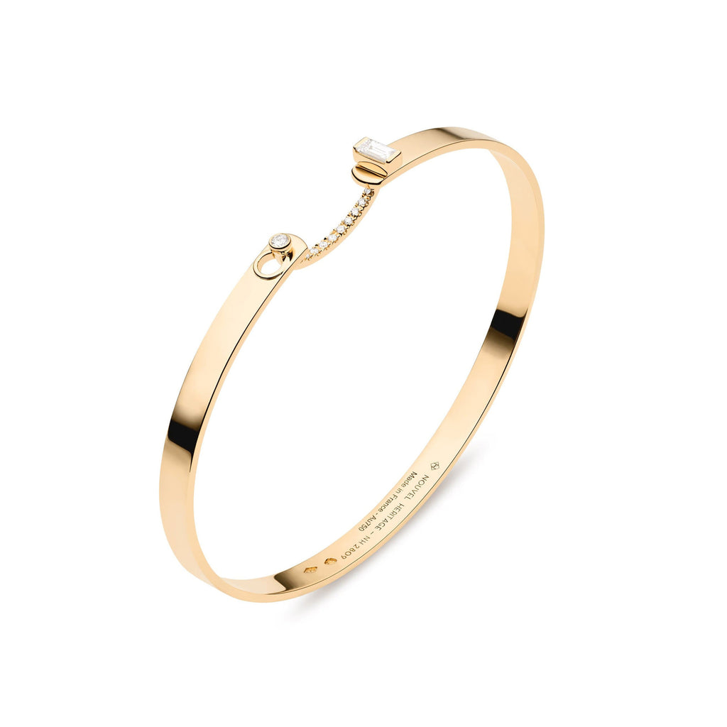 18k yellow gold Dinner Date, 4mm wide bangle with 0.21cts diamonds. Total bangle weight is 10.9 grams.