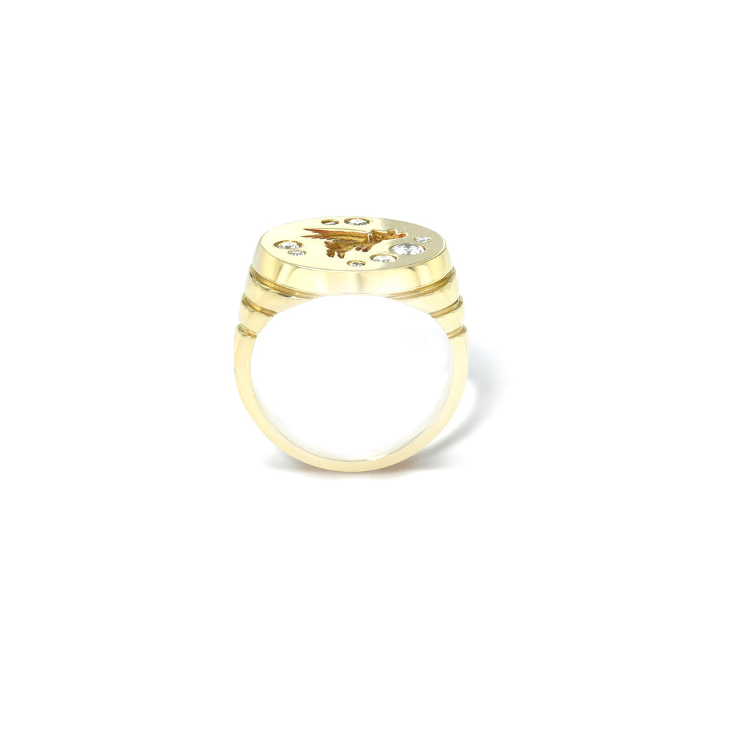 Defy the impossible with this flying pig ring—because even pigs can soar! Embellished with diamonds and a reminder that anything is possible.