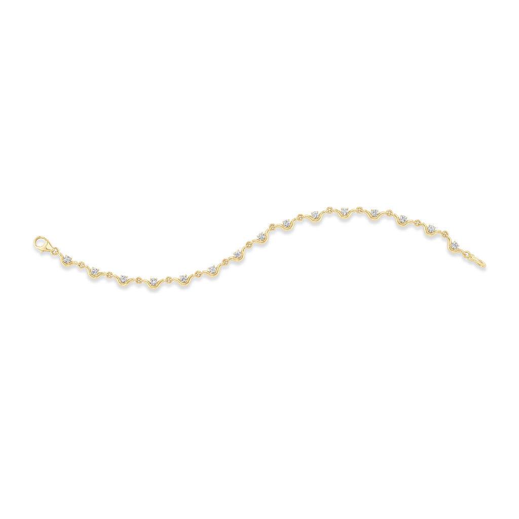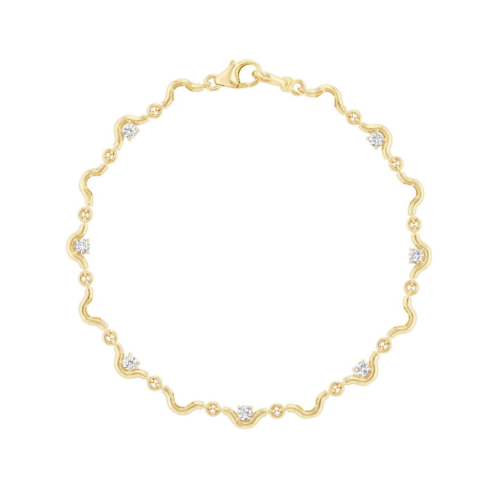 Not your typical diamond bracelet. The Louise Line bracelet offers a scalloped silhouette that nestles the diamonds. They are set on each side, so as the bracelet turns there is no void of sparkle to the eye.