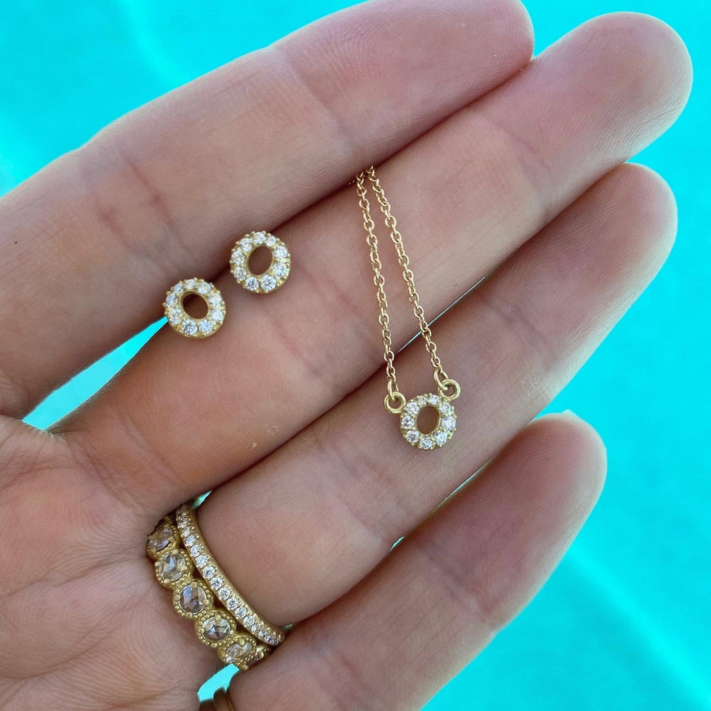 If you have been a follower of Samantha Louise Jewelry since the beginning, you'll know that the Halo & Dot collection is the foundation of the brand. The 18K yellow gold Micro Pavé Halo Necklace features .09ctw white diamond accents, measures 6mm in diameter and is fixed to an adjustable 16-18 inch cable chain.