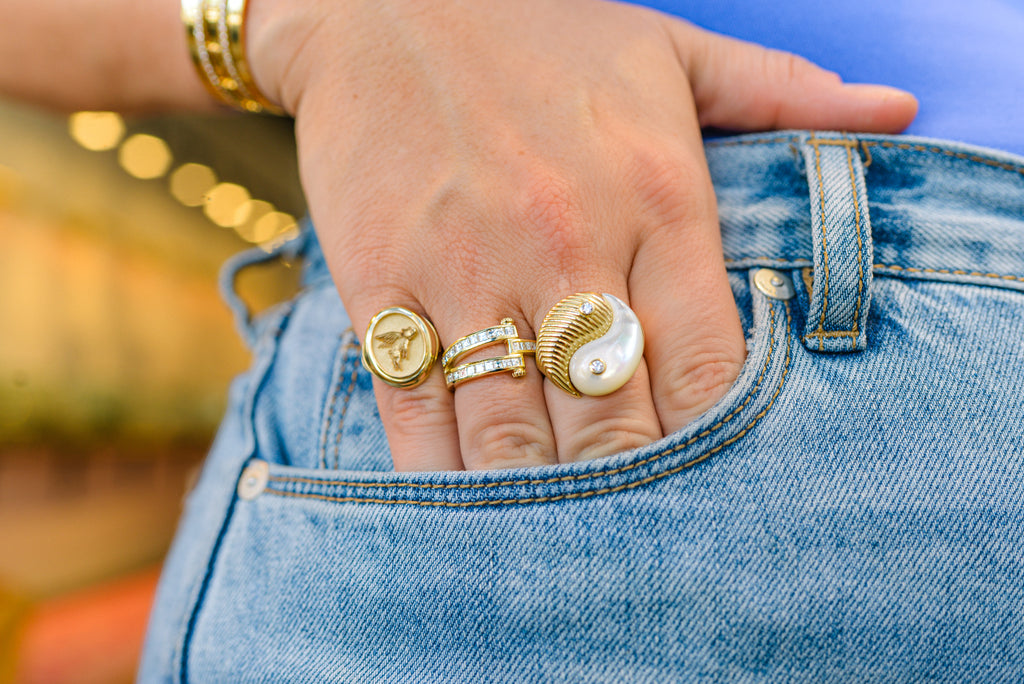 Balance your style game with this yin yang ring—mother of pearl perfection that keeps everything in harmony.