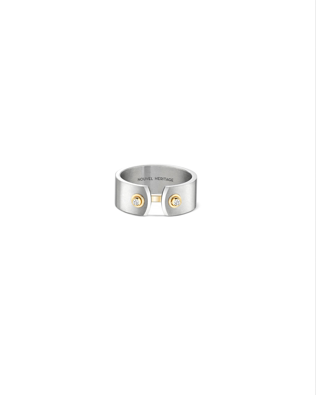 18k yellow gold and titanium ring "Paris from Sky" with 2 white diamonds at.04ctw, 8mm, finger size 9