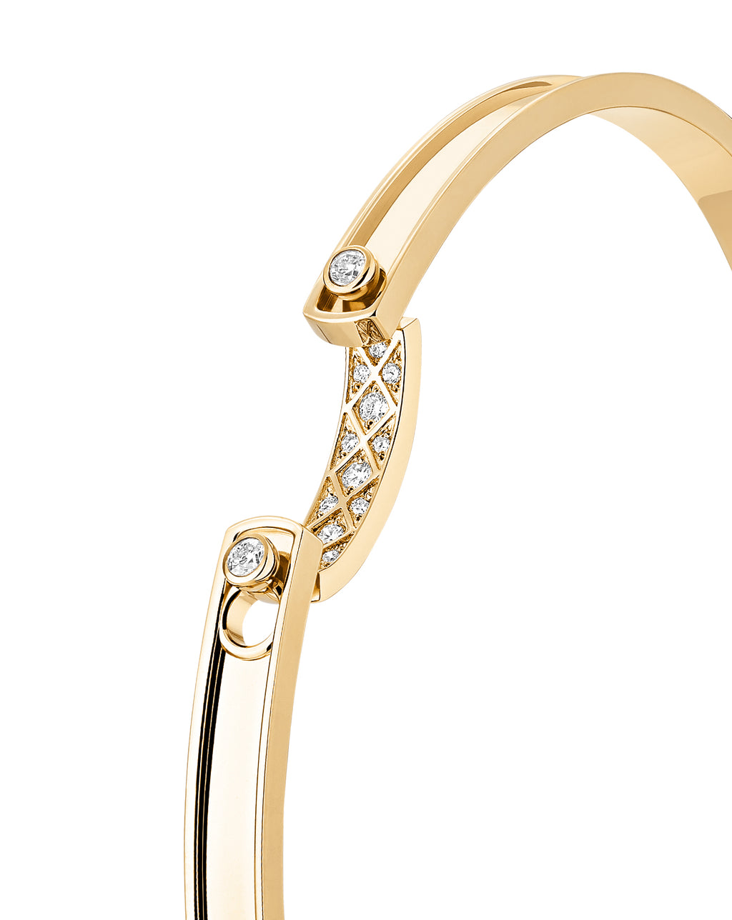 18k yellow gold, 4mm wide bangle, with 15 diamonds at .146ctw