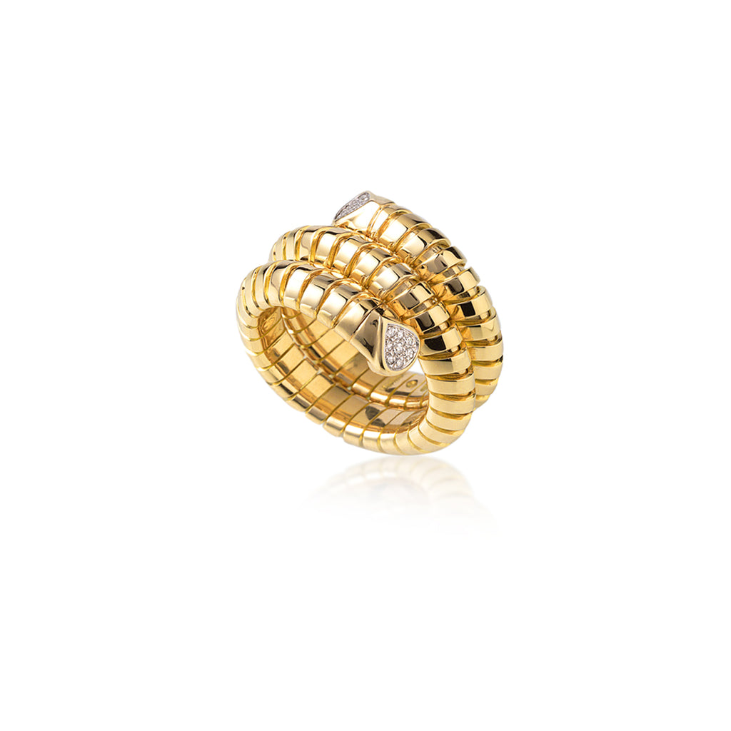 18k yellow gold Trisola wrap ring with pave diamonds ends, 0.11ctw white diamonds.